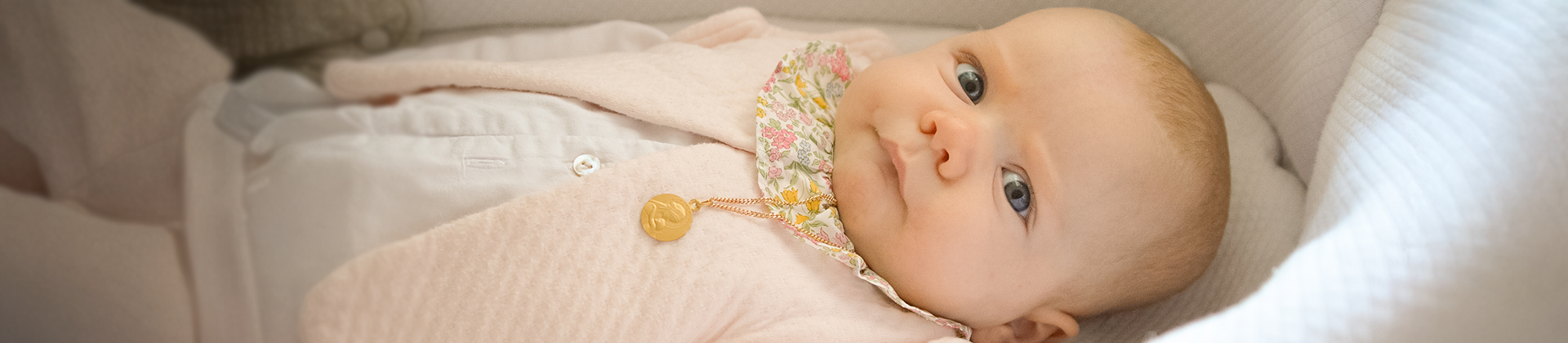 Nuestras medallas de bautismo en oro de 18 quilates están diseñadas y fabricadas en nuestros talleres de acuerdo con una tradición artesanal de estampado de medallas. Garantía de calidad, resistirán el paso del tiempo y acompañarán a su ahijado/a en los momentos más importantes de su vida.